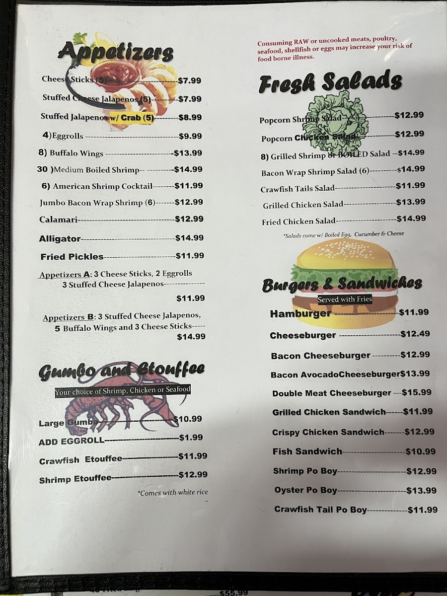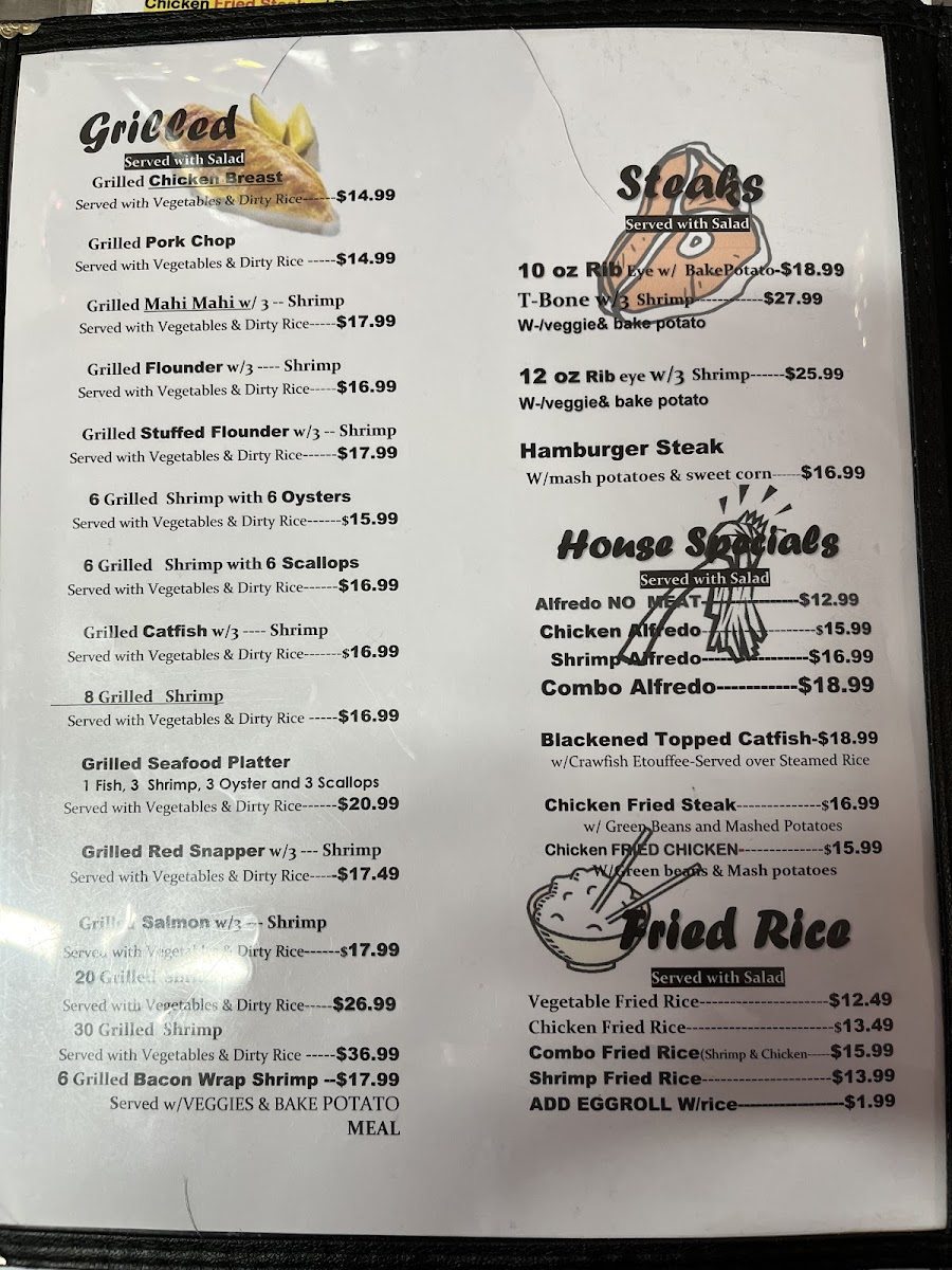 If you're in the mood for a flavorful feast, the Texas Seafood & Steakhouse Menu has something that will hit the spot. Located at 727 E Main St in Eagle Lake, TX, this menu is packed with fresh seafood, perfectly grilled steaks, and sides that’ll keep you coming back for more. Whether you're craving a tender filet mignon or a plate of sizzling shrimp, you'll find everything you need to satisfy your hunger. The fish is always fresh, the steaks are cooked to perfection, and the portions are generous enough to make sure you leave full and happy. From the first bite to the last, every dish is a celebration of flavor. And with a variety of options to choose from, you'll never get bored - whether you're in the mood for something light and fresh or hearty and filling. Come hungry, because this menu has everything you need for a delicious meal.